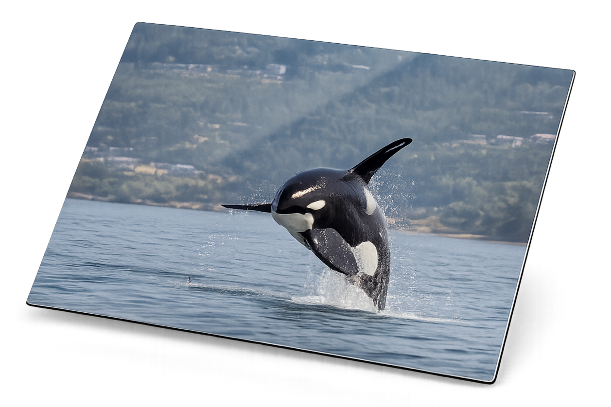 Printed directly onto premium aluminum for luminous color, sharp detail, and striking modern presence. A sleek, frameless display with bold visual impact.