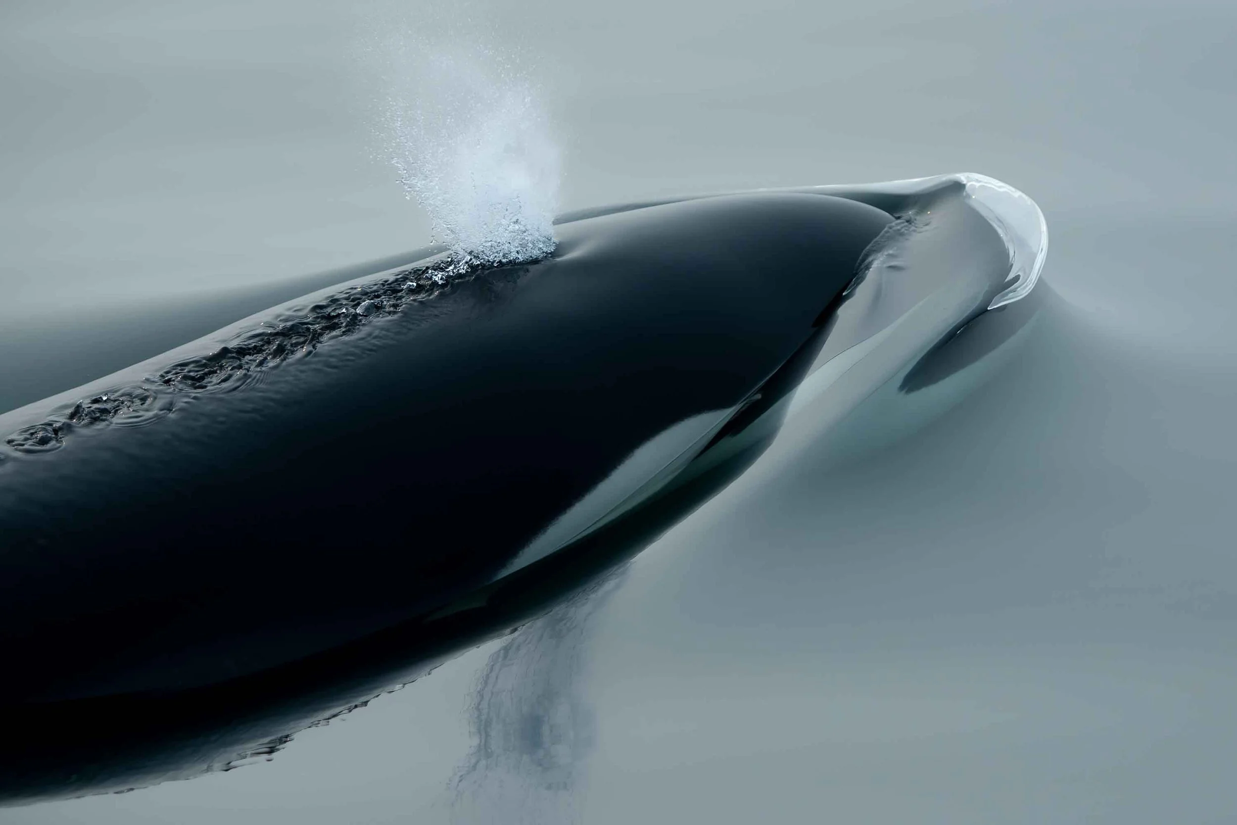 Photographed in natural conditions, Silent Passage emphasizes simplicity, motion, and atmosphere. The smooth curvature of the whale’s body, the soft mist of the exhale, and the glass-like water create a composition that is both powerful and meditative — a defining example of contemporary wildlife fine art photography from the Pacific Northwest.